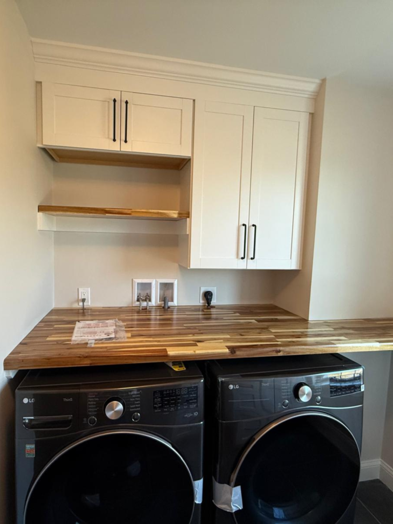 The result is a laundry area that blends practicality with a modern, well-maintained look, improving both comfort and usability.